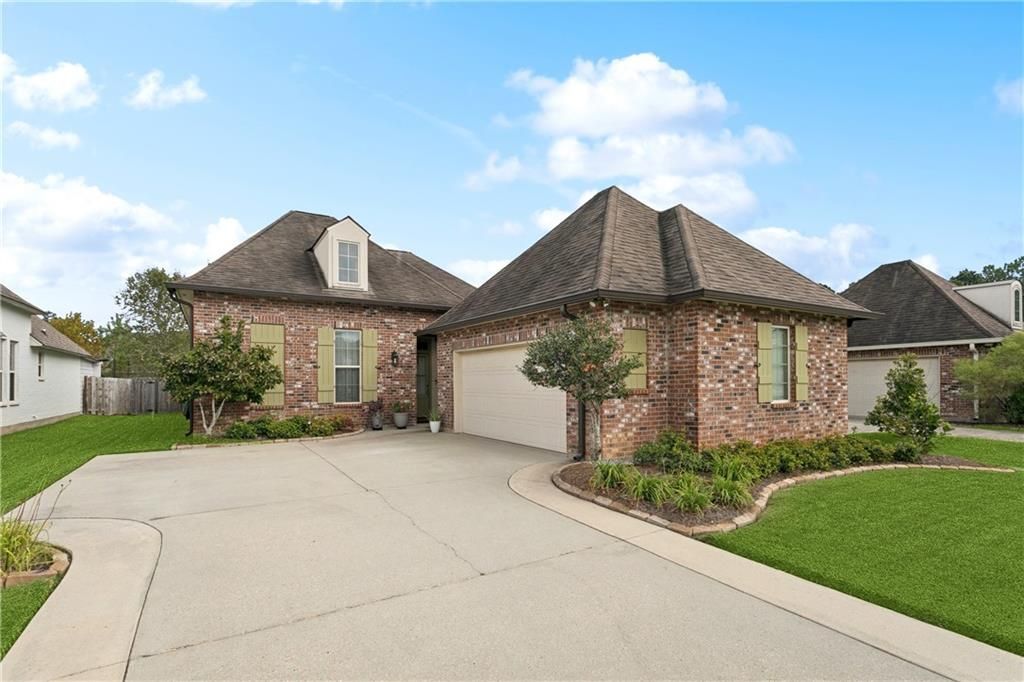 Welcome to this beautiful brick home in Bedico Creek in Madisonville! Classic curb appeal, manicured landscaping, and a welcoming front entry set the tone for the inviting interior that follows. Step inside to soaring ceilings, rich wood flooring, and elegant crown molding that create a bright and refined living space. The living room centers around a stylish gas fireplace with a detailed mantle, offering a warm focal point for relaxing or entertaining. Large windows and glass doors bring in natural light and connect the living space seamlessly to the backyard patio. The dining area flows effortlessly into the kitchen, creating an open and functional layout. The kitchen features white cabinetry, granite countertops, stainless steel appliances, a spacious center island, and a clean subway tile backsplash. Pendant lighting and recessed lights keep the space bright while open shelving adds both style and convenience! The primary suite offers a spacious retreat with a tray ceiling, ceiling fan, and beautiful natural light from large shuttered windows. The primary bath includes a soaking tub, separate glass shower, dual vanities with granite counters, and plenty of storage. Additional rooms provide flexibility for guests, hobbies, or a home office. Step outside to a covered patio with ceiling fans and string lighting, creating a perfect setting for relaxing or entertaining. The fenced backyard offers green space and privacy to enjoy the outdoors. Schedule your private showing today!