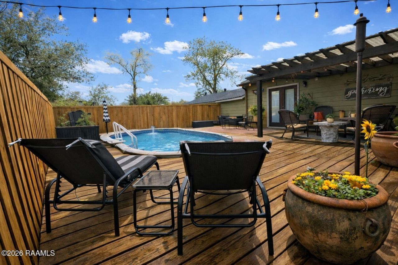 Welcome to this move-in ready family home in Sulphur, Louisiana, offering comfort, charm, and beautiful indoor-outdoor living. Thoughtfully designed for both everyday life and entertaining, this home provides space to gather, relax, and make memories.The heart of the home features an open-concept kitchen with granite countertops, ample cabinetry, and an oversized island with bar seating--perfect for casual meals and hosting. The kitchen flows seamlessly into the main living areas, creating a warm and inviting layout.The primary suite serves as a private retreat, complete with a spa-inspired bathroom featuring a walk-in tiled shower, soaking tub, and elegant finishes.Step outside to your own private backyard oasis, designed for year-round enjoyment. The covered outdoor living area includes ceiling fans and string lighting, making it ideal for dining and relaxing. The pool and expansive deck create the perfect setting for summer gatherings, while the fully fenced yard adds privacy.Additional highlights include: Multiple living spaces Fireplace and charming architectural details Dedicated laundry and storage areas Seamless indoor-outdoor flowConveniently located minutes from Lake Charles, shopping, dining, and major roadways, this home offers the perfect blend of lifestyle, comfort, and location. Dont miss your chance to own this Sulphur home with a pool.