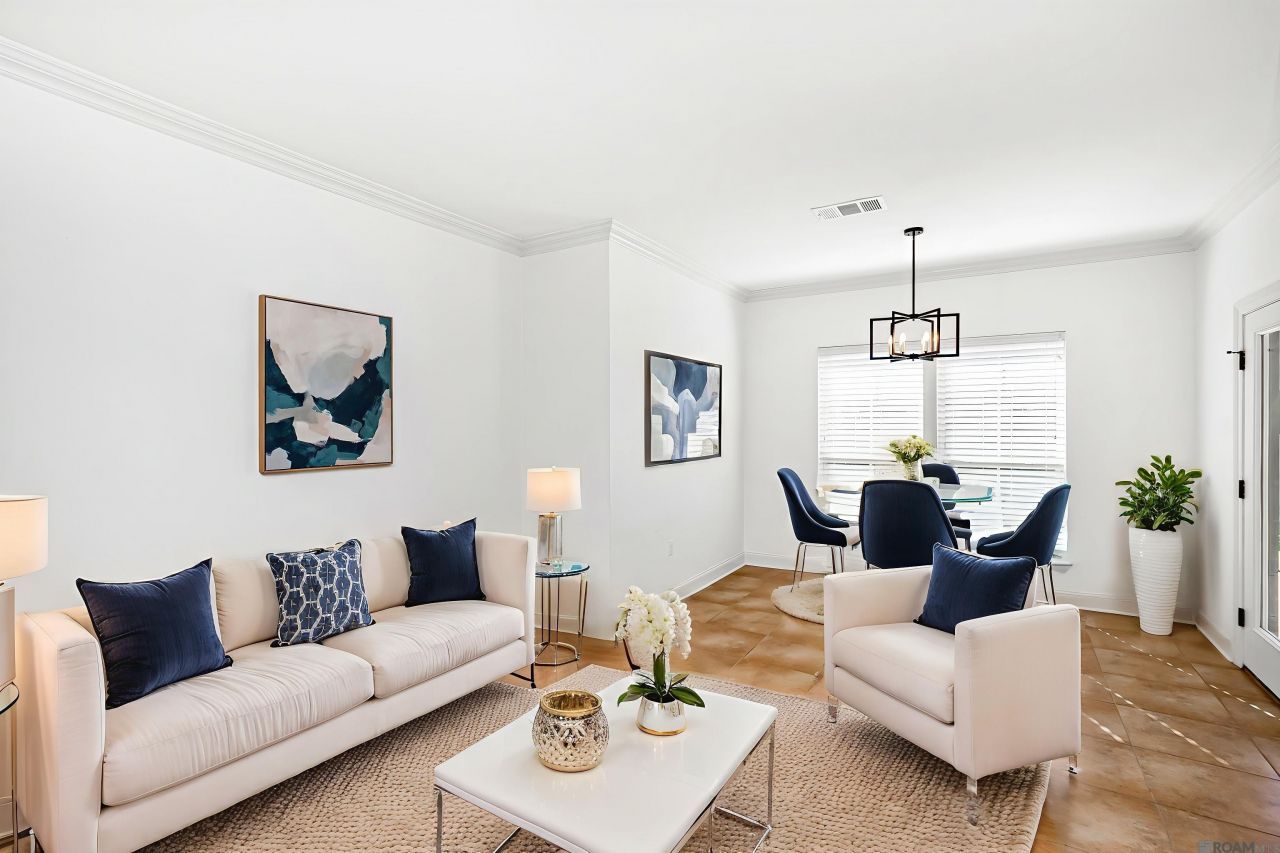 Just listed in The Lakes at Jamestown, located in the new City of St. George. This beautiful home sits in one of Baton Rouge's most desirable neighborhoods, featuring a landscaped entrance, tranquil lake views, and an impressive community pool and clubhouse. Inside, the functional split floor plan is filled with natural light and showcases a freshly painted interior and exterior, 12-foot ceilings, brand new carpet, triple crown molding, granite slab countertops, a gas cooktop with stainless appliances, and wood flooring throughout the living and dining areas. The bedrooms feature brand-new carpet, and the layout includes a convenient half bath and a private office located just off the kitchen, making it ideal for guests or working from home. The fenced backyard offers an extended covered patio, perfect for entertaining or relaxing outdoors. Conveniently located between Perkins Road and Pecue Lane, the home provides easy access to shopping, dining, entertainment, and healthcare, with the new Pecue I-10 on-ramp coming soon. The community hosts family-friendly neighborhood events and offers outstanding amenities, including walking trails around five fully stocked lakes, a clubhouse, pool, and fitness center, all maintained by an active HOA. Located in low-risk Flood Zone X. Schedule your private showing today.