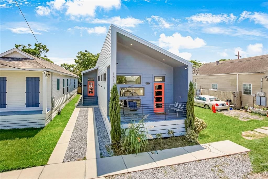 Built in 2019 on a raised foundation, this 1,897 sq ft contemporary home on Arts Street features clean lines, a metal roof, and HardiPlank siding. The open-concept living and dining area flows into a chef's kitchen with Carrara marble countertops, waterfall island, stainless steel appliances, and a full wall of cabinetry. The primary suite includes a walk-in closet, oversized marble shower, and soaking tub. Two additional bedrooms share a Jack and Jill bath. Full appliance package, two covered porches, fenced rear yard with hot tub, and two off-street parking spaces. Minutes from the French Quarter, Marigny, and Bywater.