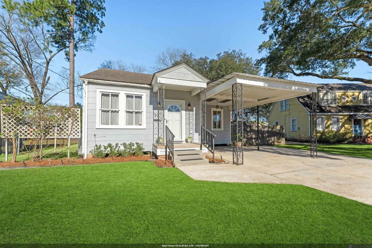 CHARMING 3 bedroom cottage in highly desirable Poet's Corner! This home would make a great primary home, investment or Airbnb with multiple living & entertaining spaces! The living room features a charming decorative brick fireplace and flows seamlessly into the adjacent formal dining room, which opens to a functional kitchen complete with a built-in bar overlooking the breakfast/keeping room?an ideal layout for entertaining. An additional spacious den provides flexible living space and opens to a covered back patio, creating an inviting extension of indoor-outdoor living. The primary bedroom suite includes a private attached bath, while two additional spacious bedrooms share a full hall bath. The front bedroom, currently being used as a home office, features a large cedar closet and private entrance offering excellent versatility. Additional highlights include unique architectural details & accents such as glass doorknobs, reclaimed antique beadboard, a pull-out ironing board and a security system. Outside, enjoy an additional wood deck ideal for entertaining, garage for storage and an attached covered carport. Situated on a large lot with a cedar fence, this home offers plenty of parking and private green space to enjoy. This home is a RARE opportunity conveniently located within walking distance to restaurants, coffee shops, the Perkins Road Overpass Merchant's District, City Park & the LSU Lakes as well as the perfect place to enjoy the festivities of the annual St. Patrick's Day Parade!