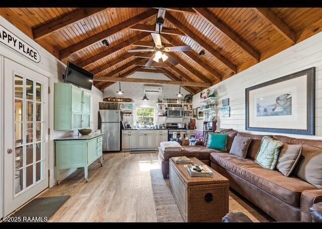 Nearly 8 acres of Paradise located 20 minutes from Lafayette. This Cottage is on a 5-acre stocked Lake nestled in St Landry Parish one mile from Lafayette Parish. This is the ultimate retreat for the outdoor enthusiast, avid fisherman and ideal for large gatherings. The 500 SF cottage and 400 SF glassed-in porch- sunroom combines rustic charm with modern amenities and a breathtaking view of the lake with waterfowl visitors. The cottage has spray foam insulated roof floor and walls, making it comfortable year-round. The cottage is heated and cooled by 2 mini-split units and 3 ceiling fans. Finishes include whitewashed shiplap walls, luxury vinyl tile floors, and stained cathedral ceilings. It has 1 bedroom, a loft, an open concept kitchen, living and dining area and one bathroom. The porch-sunroom also has an area for an extra refrigerator and stacked washer and dryer behind antique barn doors. Step outdoors onto large cement and stone patio with picnic tables and chairs. Enjoy the breeze off the lake in the two swings under mature oak trees. The yard has a 14 Ft diameter gazebo with built in seating surrounded by flower beds. There is a recently installed bulkhead closest to the cottage, gazebo, and BBQ area.