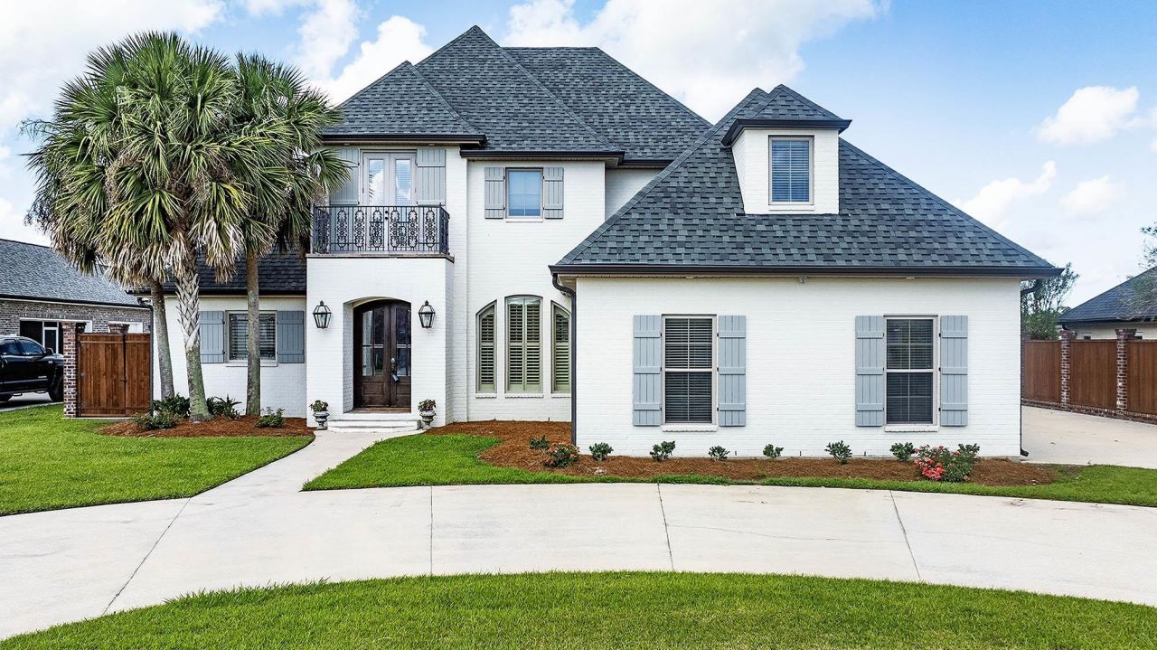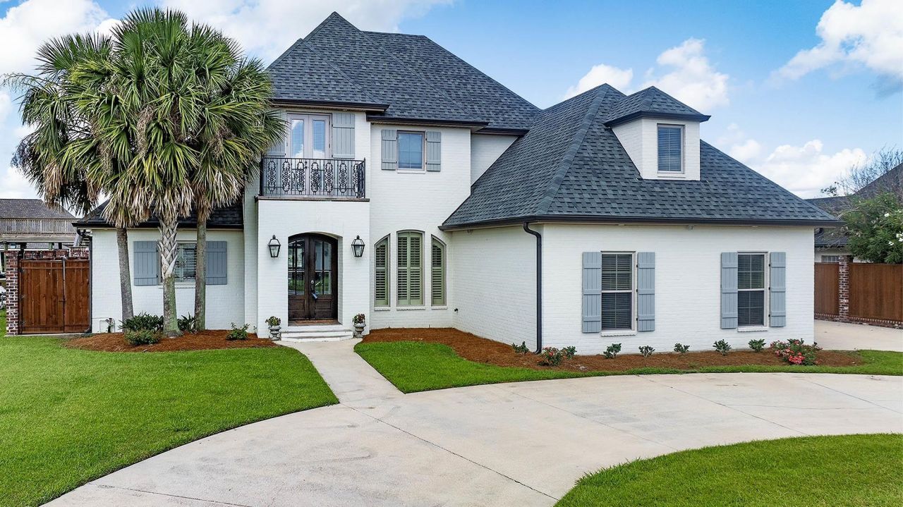 Not only beautiful, but can fit your whole family, and it's on the water with a personal boat slip, outdoor kitchen cabana, and pool! Don't let this opportunity slip through your fingers, as they don't come along often. This 5 bed 3.5 bath home, also has a dine in kitchen and formal dining space. Downstairs you will find the large main suite overlooking the back yard with double doors for easy pool access. On the other side of the home, another bedroom with full bath and walk in closet. Upstairs are three rooms with two being oversized to house a gym, playroom, or many children. The backyard is a treat, FABULOUS kitchen/cabana, and beautifully shaped pool. Safety gate around pool for safe keeping, and safety gate to keep littles away from the bayou access. By the way, that waterway is quick access to the Intracoastal Canal. After a long day at work, drop the boat, and find your peace. Triple garage to store all of the extra goodies, bonus A/C closet off of garage to keep special items climate controlled. On demand 37kw on demand generator is always a plus, and boards to cover all windows.