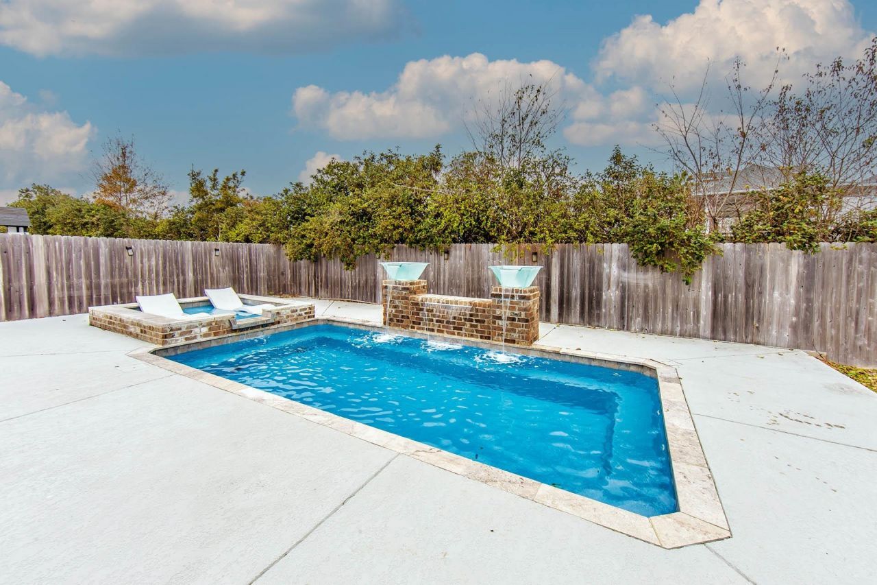 This stunning 4-bedroom, 2½-bath residence offers 2,241 square feet of refined living space, blending sophistication with functionality. Step into a spacious living room anchored by a cozy fireplace with a breathtaking ambiance for both intimate evenings and upscale entertaining. While the custom window coverings throughout the home add an elevated designer touch. The heart of the home is a beautifully updated kitchen featuring rich quartz countertops, newly painted cabinetry, a gas stove with built in wall oven, and a striking refined wood island??" a true centerpiece designed for gathering, entertaining, and culinary creativity. Both full bathrooms are thoughtfully appointed with double vanities, offering space and convenience. The primary suite is a private retreat, framed by three large windows overlooking the sparkling pool. The en-suite bath is pure luxury, complete with a soaking tub, separate tiled shower, and an expansive walk-in closet. Designed with entertaining in mind, a convenient half bath is located near the back entrance. Step outside into your private backyard oasis ??" featuring a covered patio with motorized roll-down screens that automatically retract in winds over 30 mph, an open-air patio with a fire pit, elegant patio furnishings, and seamless access to the two-car carport. The show-stopping outdoor space features four stunning waterfall elements and captivating nighttime lighting, creating a true resort-style atmosphere with 10 x 20 saltwater pool that converts into a jetted hot tub for the ultimate spa experience. Built with both luxury and resilience in mind, this home includes impact-resistant hurricane-proof windows, Bahamas shutters, and roll-down hurricane shutters on both the front and back doors for enhanced storm protection. A wood privacy fence surrounds the property, and a 24-kW whole-home generator. Located in the highly desirable Mulberry School District. A private retreat designed for entertaining, relaxing and beautiful living.