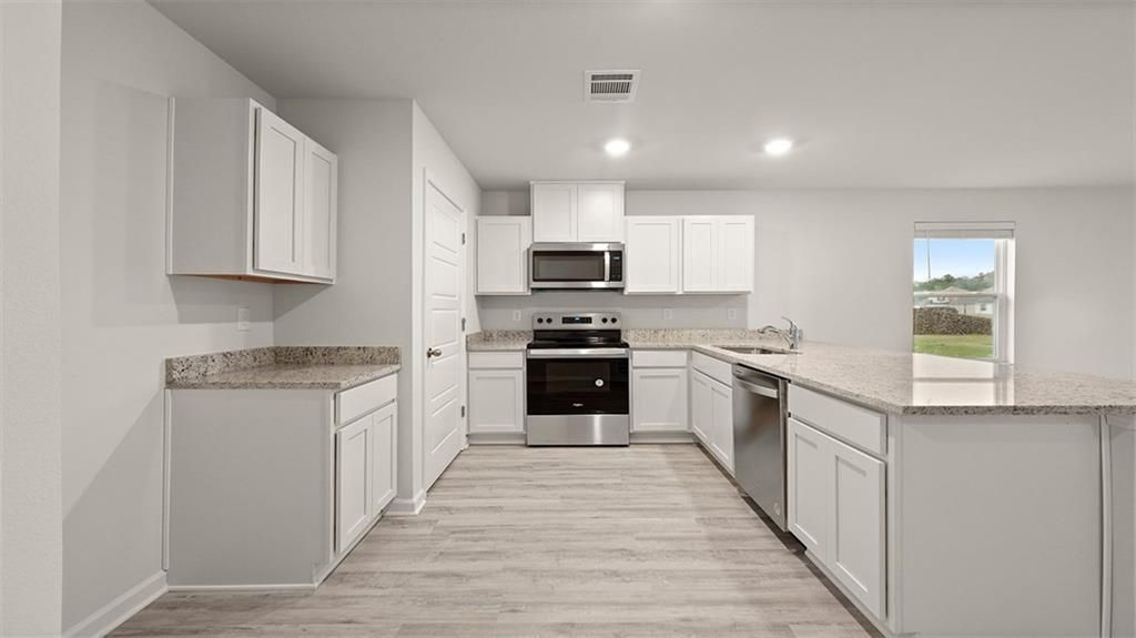 Welcome to the Hickory model, a new home in Cypress Reserve Inside this 4-bedroom, 2-bathroom home, you'll find 1,506 square feet of enjoyable living. Once you walk into this home, you'll see two bedrooms along with the guest bathroom. Walking down the foyer, you'll see another bedroom down a short hallway, that houses the HVAC system and the linen closet on the other side. You'll then reach the open concept living space, starting with the kitchen. The kitchen offers shaker-style cabinets, gooseneck pulldown faucets in the kitchens. The chef in your family will also enjoy the stainless-steel Frigidaire appliances, stove, microwave hood, dishwasher, single basin undermount sink. and 3 cm granite throughout. The kitchen also houses a large corner pantry, and the separate laundry room is located on the other side, creating easy access to everything. The dining room is adjacent to the kitchen, and the living room is situated nearby. This smart layout ensures that anyone in either space can always be part of the action, regardless of their location. Each bedroom is equipped with cozy carpeting and a convenient closet. Whether you need a space for entertainment, storage, hosting guests, relaxation, or fitness activities, you can count on feeling comfortable and content. The primary bedroom is in the rear of the home and has its own en suite. The primary bathroom features a double vanity with a tub/shower combo, large walk-in closet, separate linen closet, and a separate water closet. Get in touch with us now and discover your new residence today!