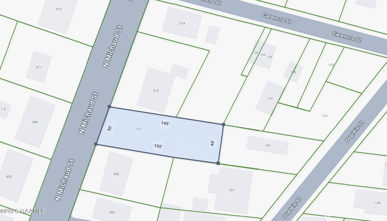 Vacant residential lot available in Carencro! This level parcel at 510 N Michaud St offers a versatile footprint for new construction or investment. Located within the Carencro city limits, the property provides easy access to the I-49 corridor, local schools, public parks, and dining. City utilities are available in the area. A great opportunity for anyone looking to build in an established residential setting.