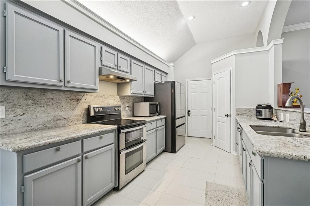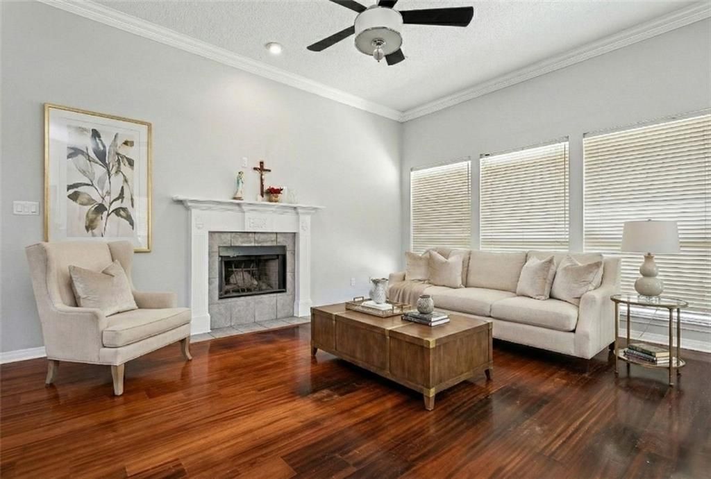 Beautifully maintained 3 bedroom, 2 bath home offering 2,126 square feet in Crestwood Estates. Warm wood flooring and crown molding create an inviting first impression, while the living room centers around a classic fireplace and fills with natural light from surrounding windows. The layout flows effortlessly into the dining area, highlighted by a statement chandelier and backyard views. The kitchen features granite countertops with matching backsplash, stainless steel appliances, sleek vent hood, and generous cabinetry, delivering both style and function. The spacious primary suite offers tray ceilings, continued wood flooring, and a private bath with granite counters and a large soaking tub wrapped in tile. Secondary bedrooms are well sized, and the additional bath includes granite surfaces and a tiled tub and shower combination with decorative accent band. Out back, enjoy a covered patio overlooking a fully fenced yard with tall trees and expansive green space. Schedule your private showing today or submit your offer and make this Crestwood Estates home yours!