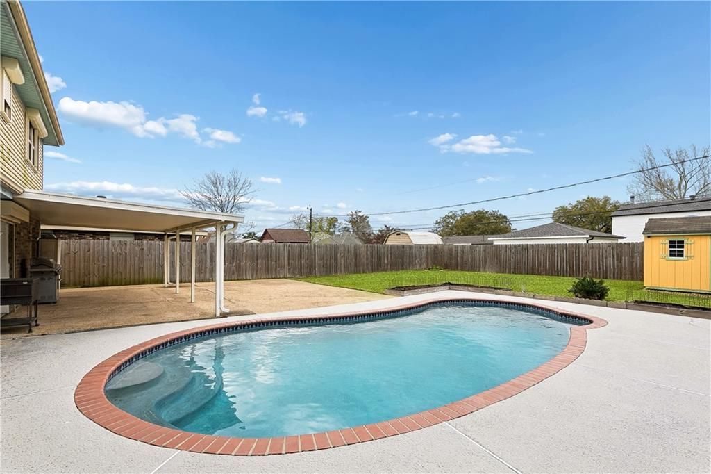 Freshly updated and move-in ready, this inviting 3-bedroom, 2.5-bath home offers comfortable living and great spaces for both relaxing and entertaining. The home features a spacious living and dining combination, along with a bright breakfast area perfect for everyday meals. Recent updates include fresh interior paint, updated flooring, and beautifully refreshed bathrooms, giving the home a clean, modern feel. Step outside to enjoy your own private retreat with a beautifully refinished saltwater in-ground pool, ideal for cooling off during warm Louisiana days. The large backyard provides plenty of space for outdoor activities and includes a storage shed for added convenience. A generously sized covered patio creates the perfect setting for outdoor gatherings, grilling, or simply relaxing poolside. For added peace of mind, the home is equipped with storm shutters for safety and protection. This property combines thoughtful updates, comfortable living spaces, and excellent outdoor amenities?making it a wonderful place to call home.