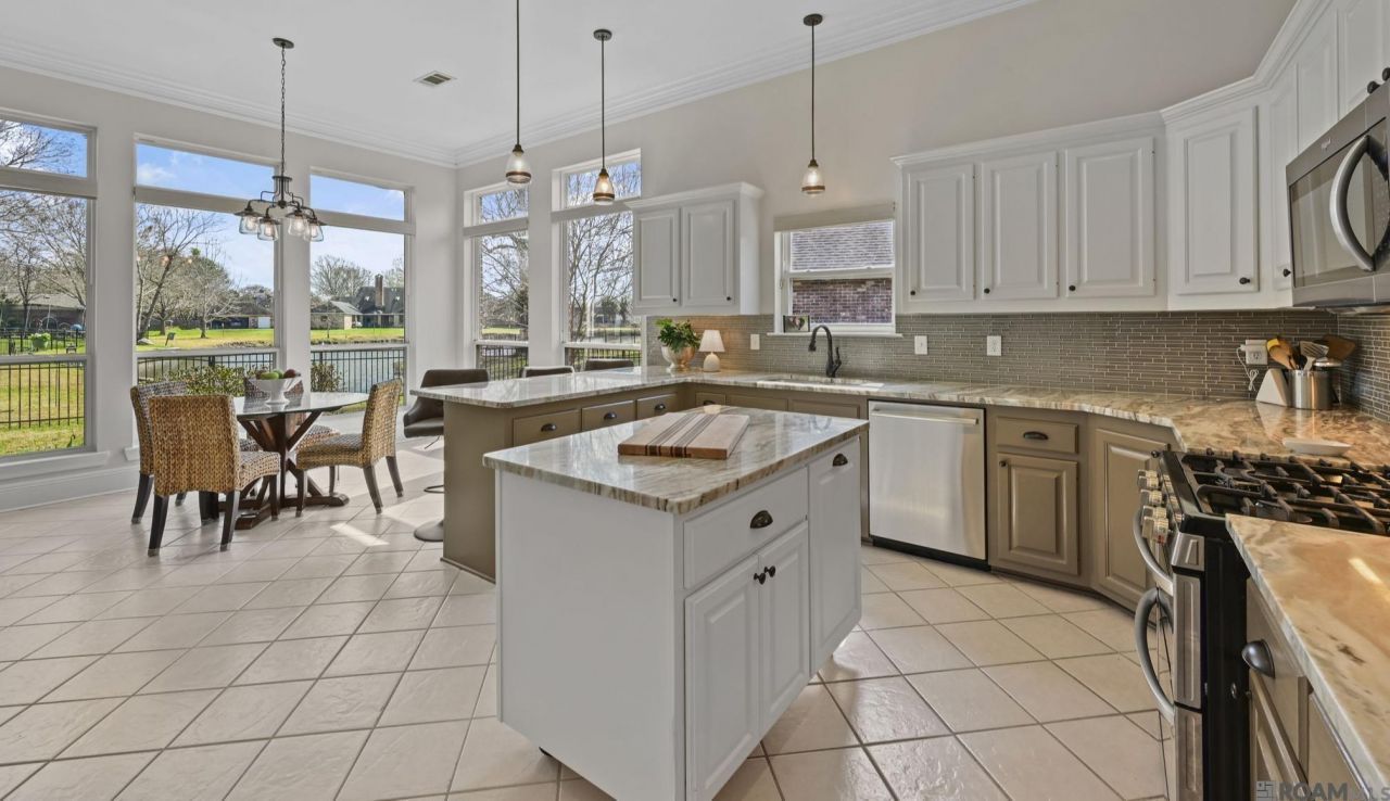 Riverbend Lakes Neighborhood LAKEFRONT HOME near the neighborhood park! When you walk in this home you will appreciate the Views the Newer Oversized Windows provide! This 4 Bedroom/3 Bath home has Wood floors/Ceramic tile throughout. NO CARPET in this house!! You'll enjoy Outdoor Living with the SCREENED IN PORCH and OUTDOOR KITCHEN. The Kitchen inside was improved in 2018 with Beautiful Brown Fantasy granite countertops, a movable Island, and New Lighting. A NEW ROOF was put on in 2019. The Primary Bathroom was updated in 2023; it's Gorgeous and Spacious!!! This home has been well maintained and LOVED. Come see for yourself!