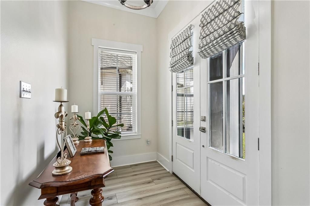 This custom-built 4-bedroom, 3-bath home is located in the highly desirable Bedico Creek subdivision in Madisonville, LA. It boasts a 3 way split floorplan, 10?11 foot ceilings throughout, custom crown molding, and luxurious vinyl wood plank flooring (no carpet!), creating a modern and inviting open floor plan. The home is equipped with smart Wi-Fi features, including an HVAC thermostat and garage door opener, for added convenience. The gourmet kitchen is a chef's dream, featuring large quartz countertops, a spacious center island, ample cabinetry for storage, and high-end stainless-steel appliances, including a 5-burner gas range, double convection ovens, and an under-counter built-in microwave. A custom vented hood adds a modern touch. The custom-built pantry provides plenty of storage space. All bedrooms feature custom closet systems with drawers for optimal organization, providing ample storage and a tidy living space. An interior stairway leads to a ready-to-be-built-out area of approximately 420 sq ft, offering additional living space with plumbing available for an extra full bath - for a home office, media room, or guest suite. Step outside to enjoy the expansive covered patio?for entertaining or relaxing. The over-sized fenced yard provides ample space for outdoor activities, with serene walking areas nearby, for enjoying nature and tranquility. The community amenities include 2 sparkling pools and peaceful walking trails, offering a resort-style lifestyle within a friendly neighborhood. Don't miss out on this exceptional home in a fantastic location?combining modern elegance with outdoor leisure and community conveniences!