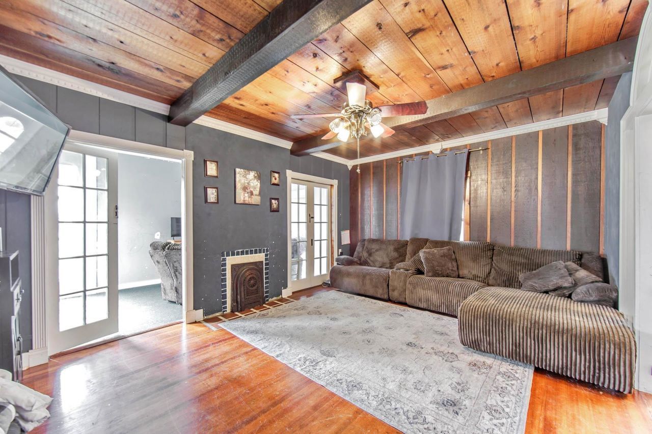 Step into a piece of history with this beautifully preserved 3-bedroom, 1.5 bath home that perfectly blends original character with thoughtful updates. You'll fall in love with the authentic wood floors, striking tin ceiling, colorful stained-glass window, wood and beamed ceiling, French doors that lead to the sunroom and the vintage charm of a Chambers gas stove. While the home retains it's timeless appeal, it also offers modern conveniences- including two AC units, new windows, a durable steel roof (2020), and a new water heater replaced in 2023. Full of warmth and personality, this inviting home tells its story through every detail and is ready for it's next chapter with you.